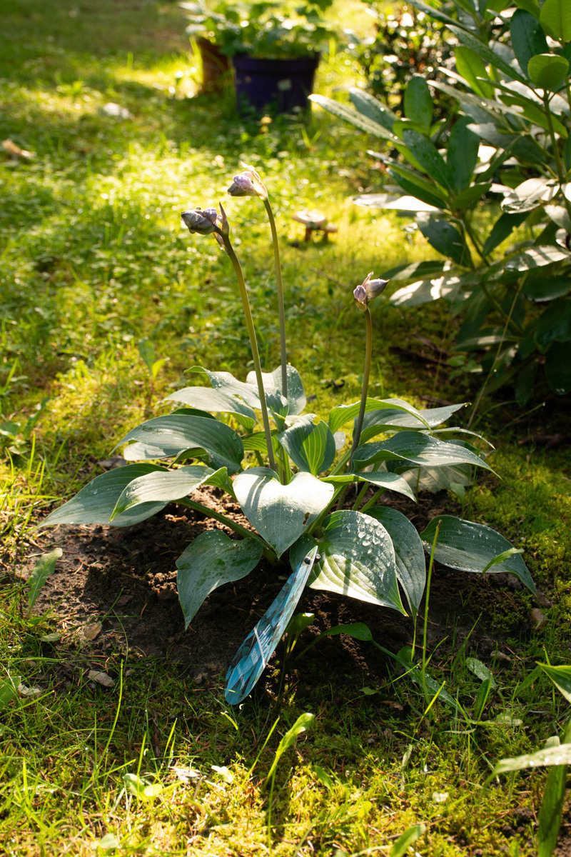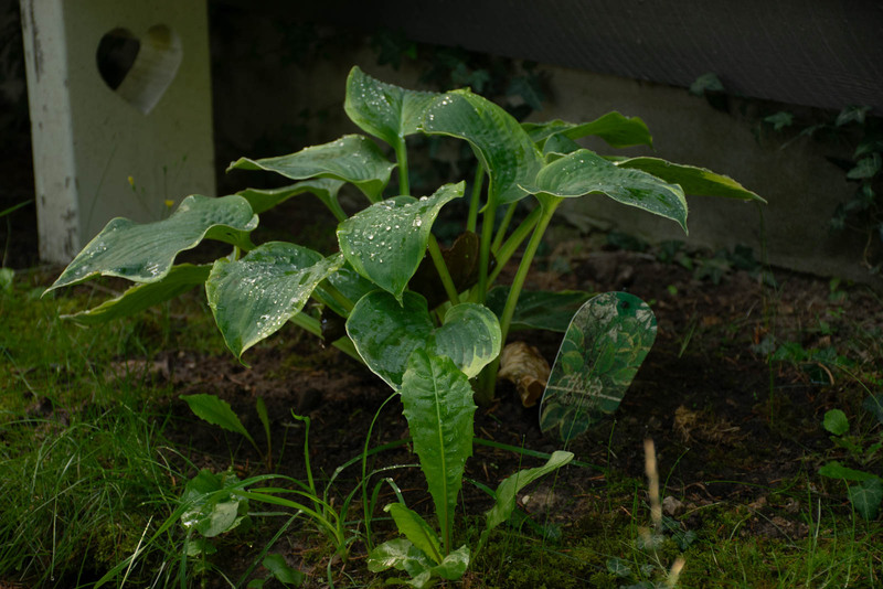 Men her i sommerhushaven er vi ind til videre fri for voldsnegle, og hosta er oplagt til forskellige skyggefulde områder. Der er købt nye ind, og der er flyttet hostaer fra byhaven her til.